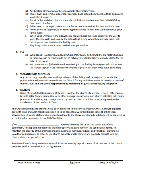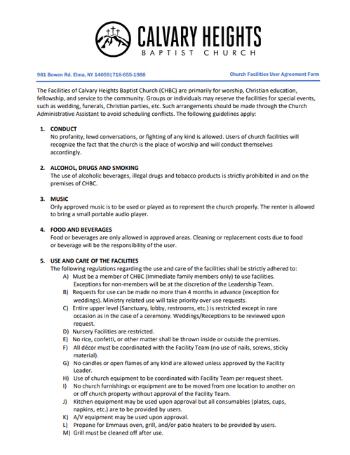 Once you have read and agree to the "Facilities Use Agreement Form" please fill out this form: